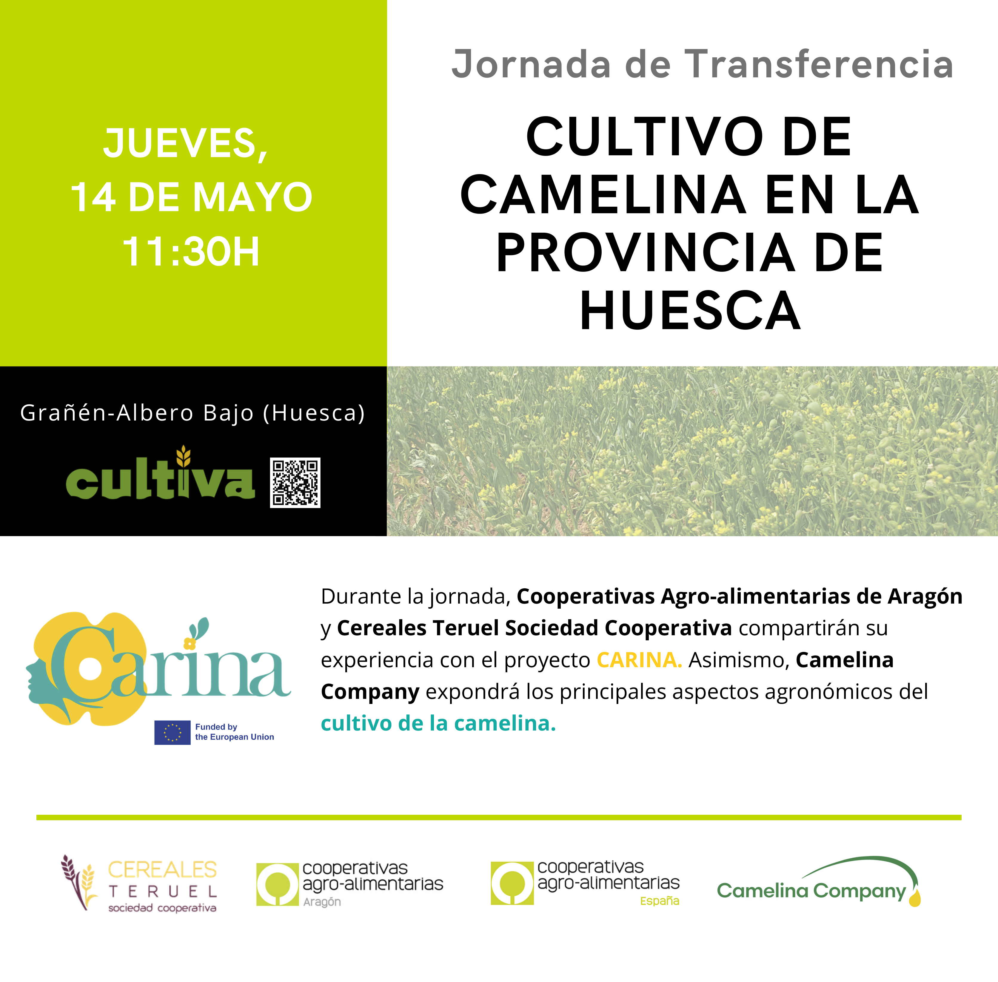 Durante la jornada, Cooperativas Agro-alimentarias de Aragón y Cereales Teruel Sociedad Cooperativa presentarán los avances y resultados obtenidos en el marco del proyecto europeo CARINA, en el que ambas entidades están implicadas. Por su parte, la empresa Camelina Company abordará los principales aspectos agronómicos del cultivo de la camelina, incluyendo recomendaciones técnicas para su desarrollo en condiciones mediterráneas.
