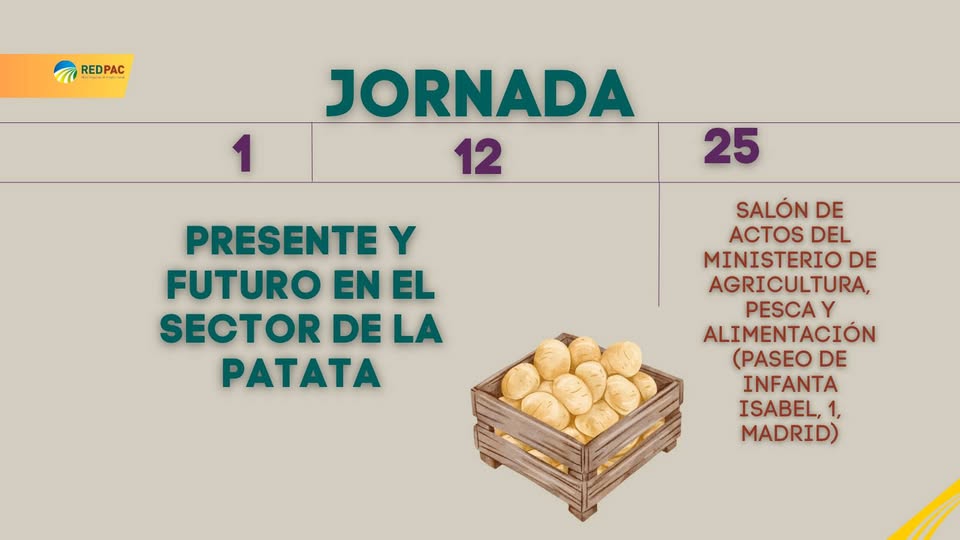 El Ministerio de Agricultura, Pesca y Alimentación (MAPA), a través de la Red PAC, celebrará el próximo 1 de diciembre de 2025 la jornada “El presente y futuro en el sector de la patata”, un encuentro diseñado para abordar los principales retos y oportunidades de un cultivo estratégico para numerosas zonas productoras españolas.