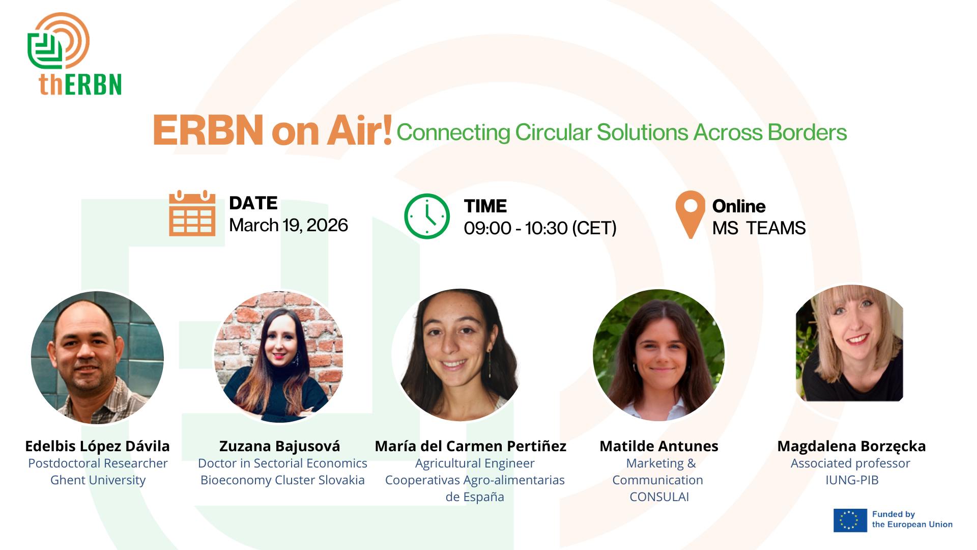 El próximo 19 de marzo de 2026, de 9:00 a 10:30 horas, tendrá lugar un dinámico encuentro en línea que reunirá voces expertas, conocimiento e innovación procedente de toda Europa sobre soluciones biocirculares. La sesión se celebrará a través de MS Teams.