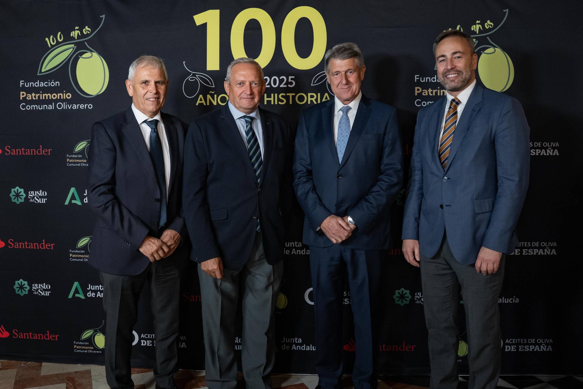 FOTOGRAFÍA: De izquierda de derecha: Fulgencio Torres, presidente de Cooperativas Agro-alimentarias de Andalucía, Ángel Villafranca, presidente de Cooperativas Agro-alimentarias de España, Rafael Sánchez de Puerta, presidente de la Fundación Patrimonio Comunal Olivarero y Gabriel Trenzado, director general de Cooperativas Agro-alimentarias de España.
