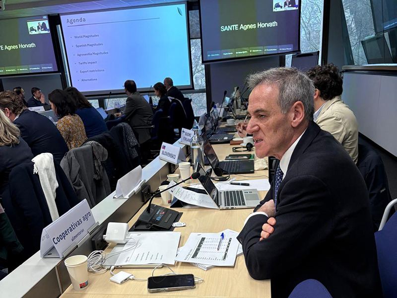 Julio Roda, director general de la cooperativa Agrosevilla y representando a Cooperativas Agro-alimentarias de España, ha participado hoy en Bruselas en el Grupo Consultivo de la Comisión Europea de Acceso al Mercado en cuestiones sanitarias y fitosanitarias. Durante su intervención, Roda ha subrayado la importancia estratégica del sector de la aceituna de mesa en España, tanto por su contribución al empleo, 130.000 en las zonas rurales como por su aportación a la triple sostenibilidad, trasladando además las crecientes dificultades para exportar a países terceros en un contexto de demanda creciente.