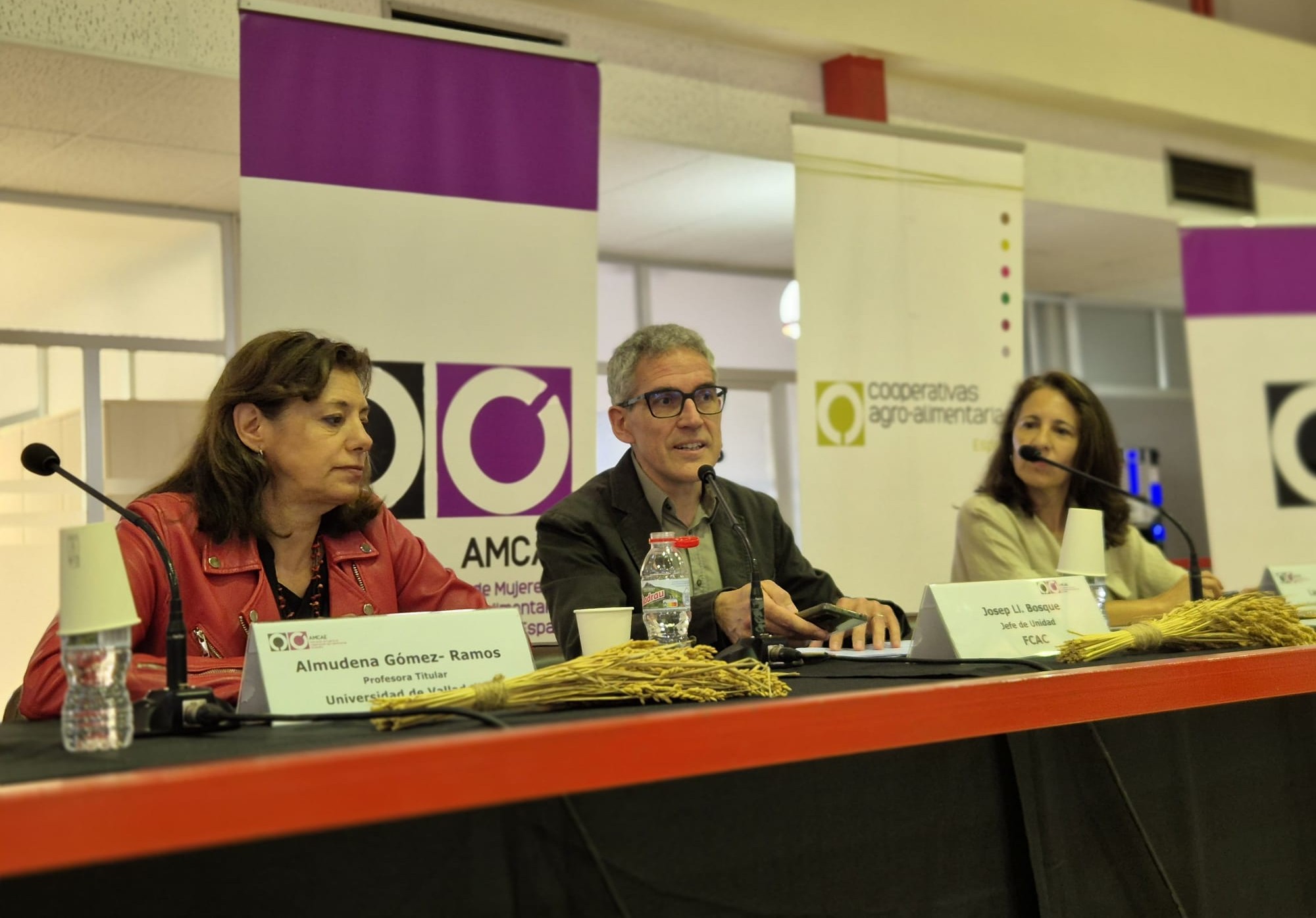 La primera mesa redonda, dedicada a los mecanismos que ofrece la Política Agraria Común (PAC) a las mujeres del sector agroalimentario, contó con la participación de Laura Dalmau (Generalitat de Catalunya) y Almudena Gómez-Ramos (Universidad de Valladolid). Dalmau puso en valor las políticas impulsadas para incrementar la presencia femenina, destacando medidas como la prima adicional para mujeres en la primera instalación o el apoyo a microempresas. Por su parte, Gómez-Ramos reflexionó sobre las limitaciones de la PAC para reducir la brecha de género, señalando que persisten desigualdades estructurales que requieren avances más ambiciosos. La mesa fue moderada por Josep Ll. Bosque, de la Federació de Cooperatives Agràries de Catalunya.