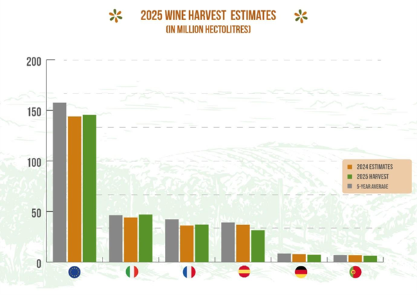 Más información: Puede consultarse información más detallada sobre la situación en otros países productores de vino de Europa, en la nota de prensa de Copa-Cogeca, del día 28-10-205: Fragile recovery for European wine in 2025: Production rises slightly, but challenges persist